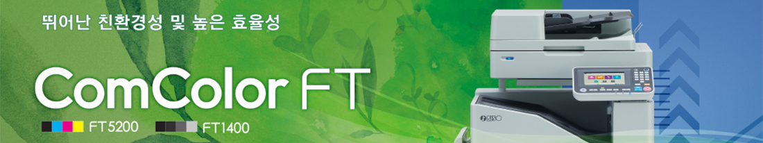 ComColor FT5200 ■ 풀컬러 잉크젯 프린터(CMYK) ■ 인쇄 속도: 120ppm ■ 용지사이즈: A3 ■ 인쇄해상도 300dpi ComColor black FT1400 ■ 흑백 고속 잉크젯 프린터 ■ 인쇄 속도: 140ppm ■ 용지사이즈: A3 ■ 인쇄해상도: 600dpi 처음페이지 1 마지막페이지